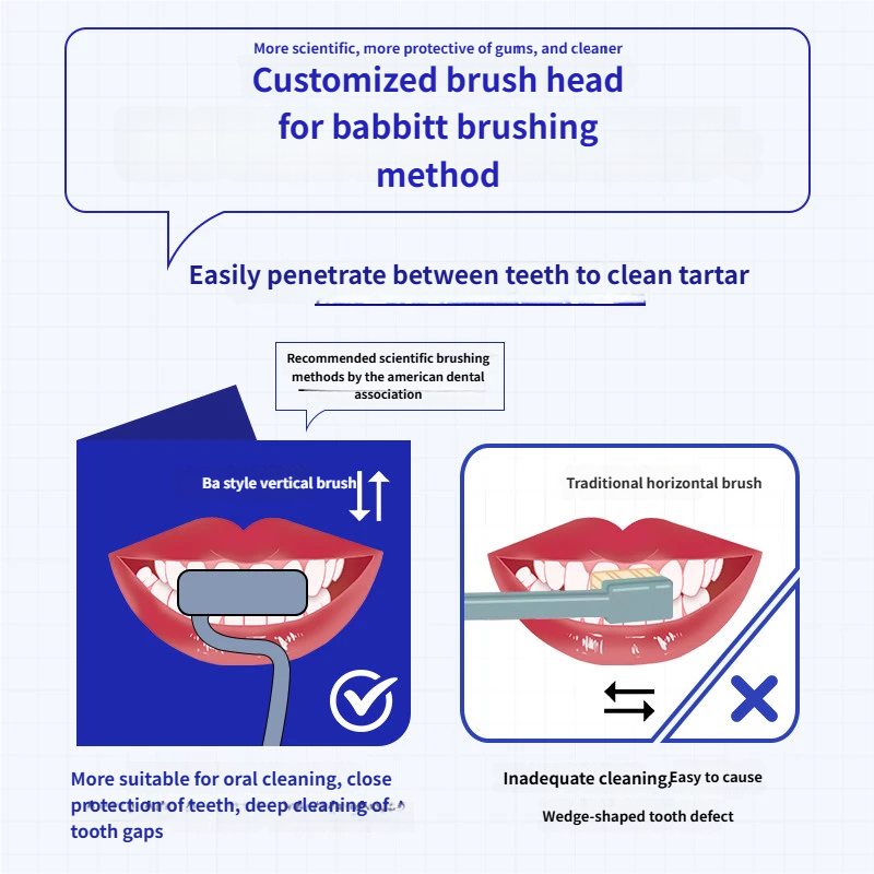 This patented design not only enhances brushing comfort but also effectively avoids the difficulty of traditional straight-handled brushes in adapting to the curves of the mouth, resulting in a more thorough and even clean.